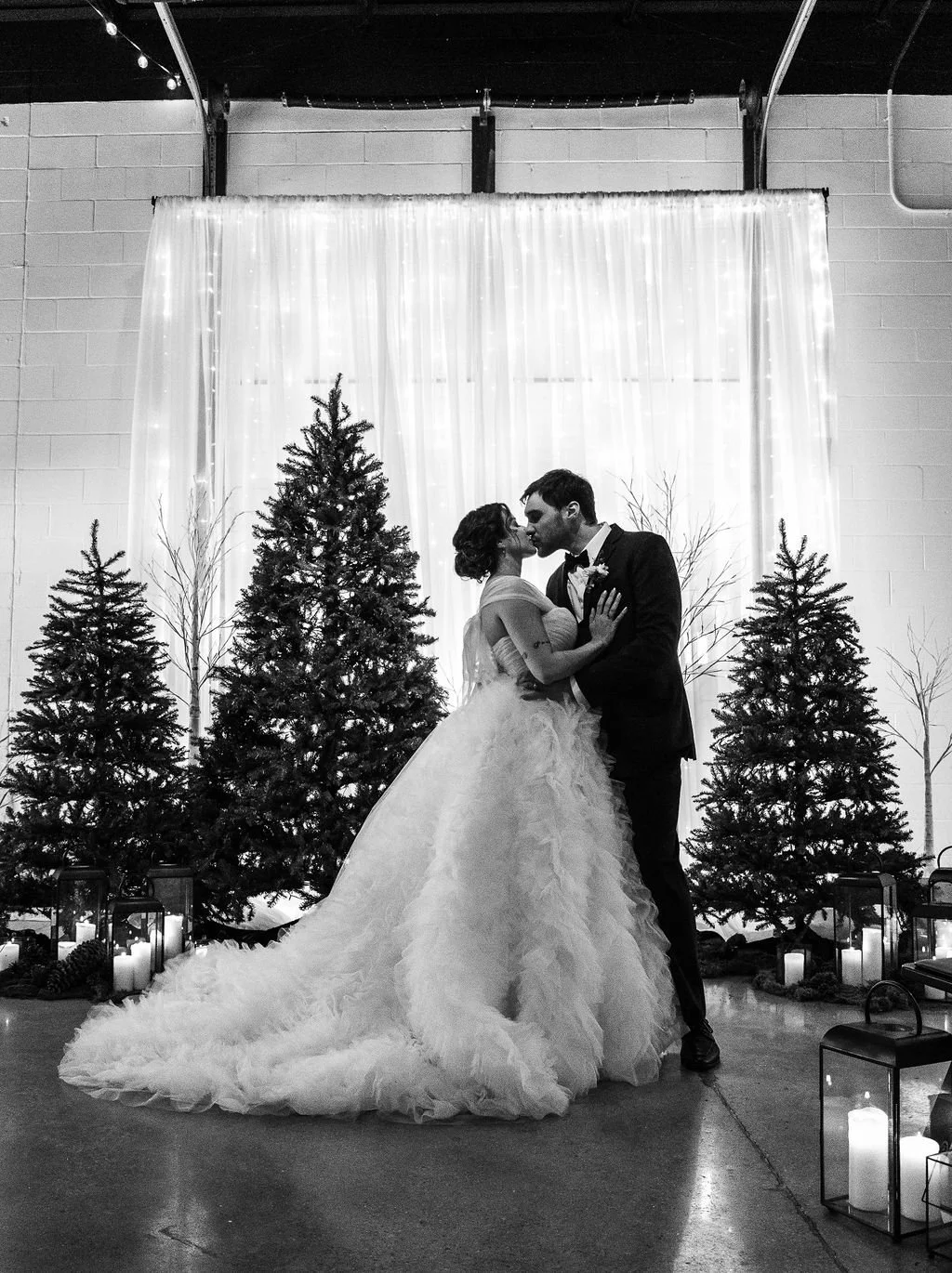 Lighting is one of the most powerful elements in shaping a winter wedding’s atmosphere. It sets the mood, highlights your décor, and brings the entire industrial space to life. In the winter, the sun sets early, giving you a rare opportunity to lean into "the glow."