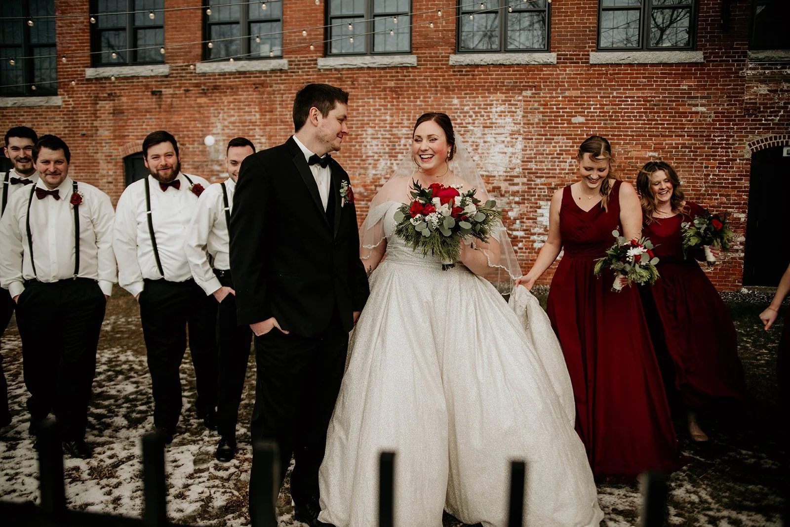Beyond beauty and location, the amenities a venue offers can make a big difference in how smoothly your wedding unfolds. At The Venues at the Factory, we've thought through the "hidden" winter needs. Our hospitality suites provide a discreet place for guests to stash heavy coats so they can slip into their dancing shoes immediately. Our 16-foot custom bar keeps lines short, and our climate-controlled spaces ensure that while the brick is historic, the temperature is modern and comfortable.